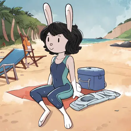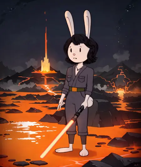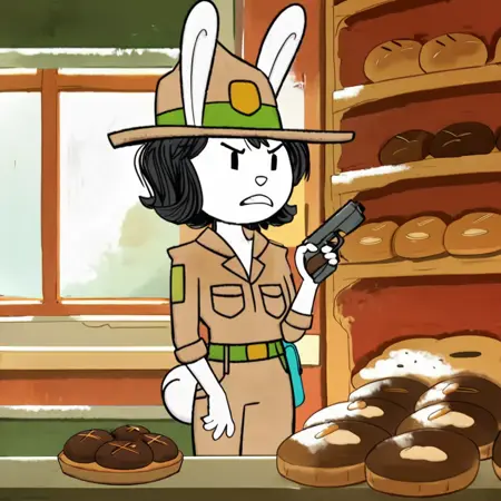 这个LoRA有助于生成类似于《Elinor Wonders Why》中兔妈妈/兔巡逻员的形象。