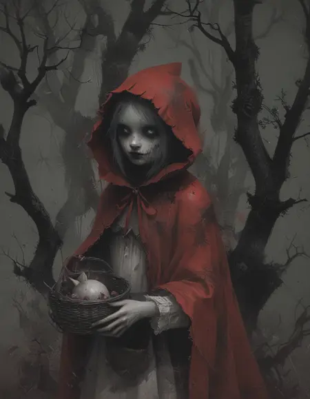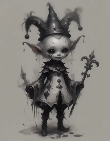 무채색 공포 스타일로, 잉크 얼룩과 떨어지는 줄이 무작위로 등장합니다. 이 스타일은 우울하고 부패한 주제에 뛰어납니다. 잉크의 전체 효과는 단독 주제나 가정 내부에서 가장 잘 나타납니다. 다른 장면도 가능하지만, 이는 공포스러운 분위기의 흑백 사진처럼 보일 수 있습니다.