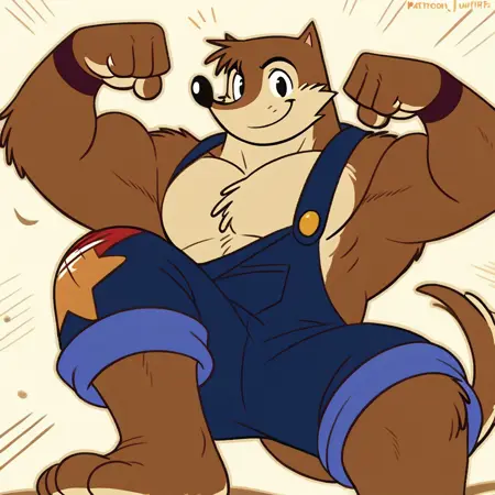 Wuffl, 1boy, brown fur, beige muzzle, black nose, black eyes, beige chest, tail