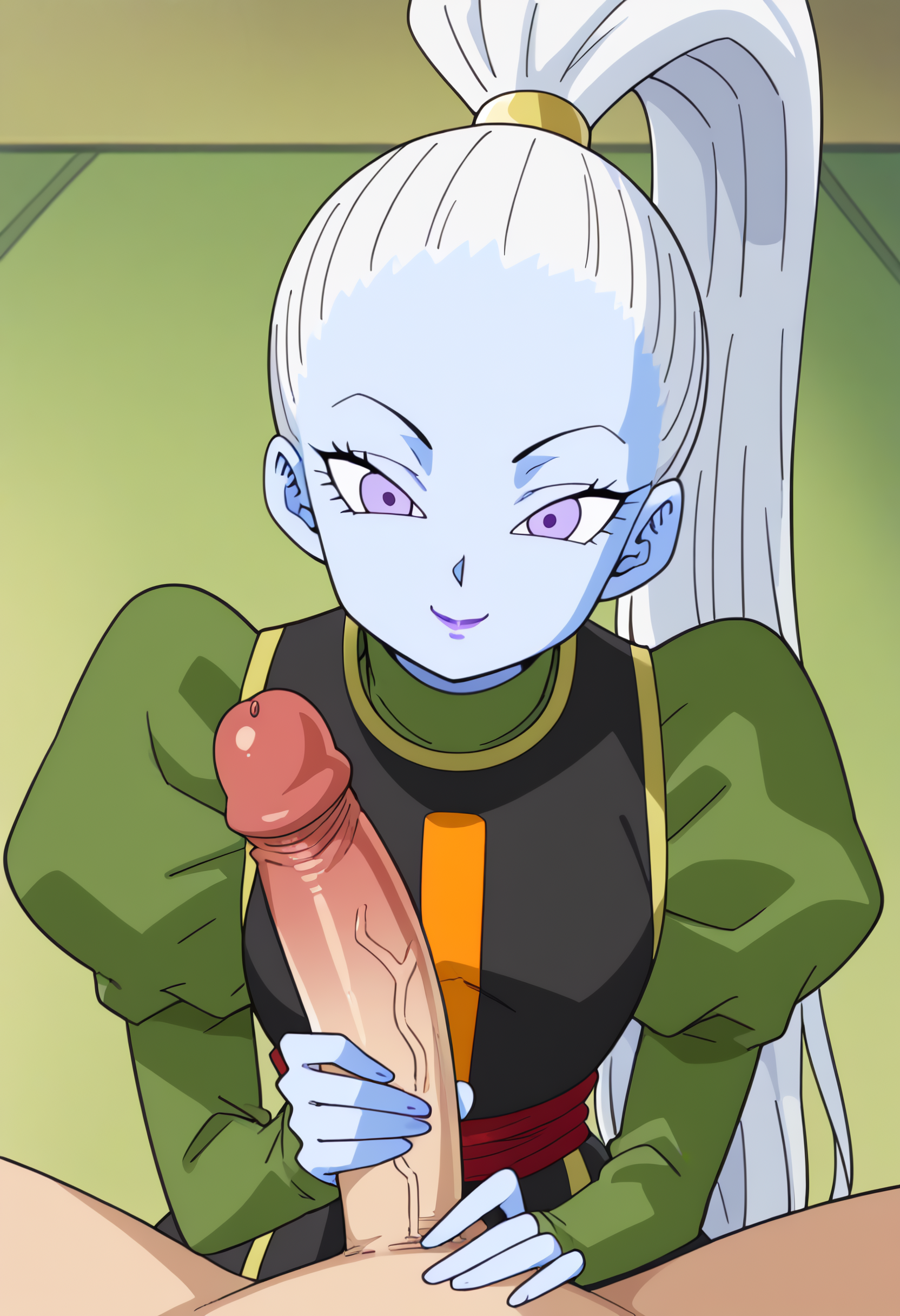 vados, 색상이 있는 피부, 파란 피부, 보라색 눈, 보라색 입술, 높은 꼬리, 뒤로 묶은 머리