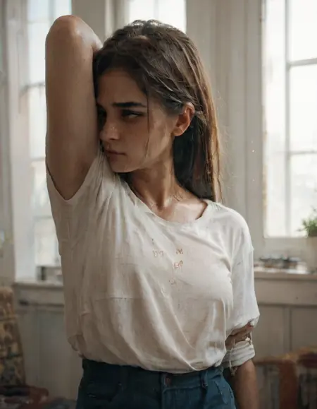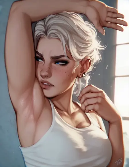 这个LoRA能够描绘一个人闻/嗅自己的腋下。