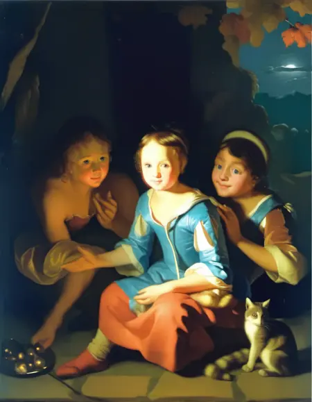 a painting of 'your prompt' at night, candle light, in the style of godfried-schalcken