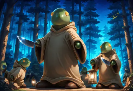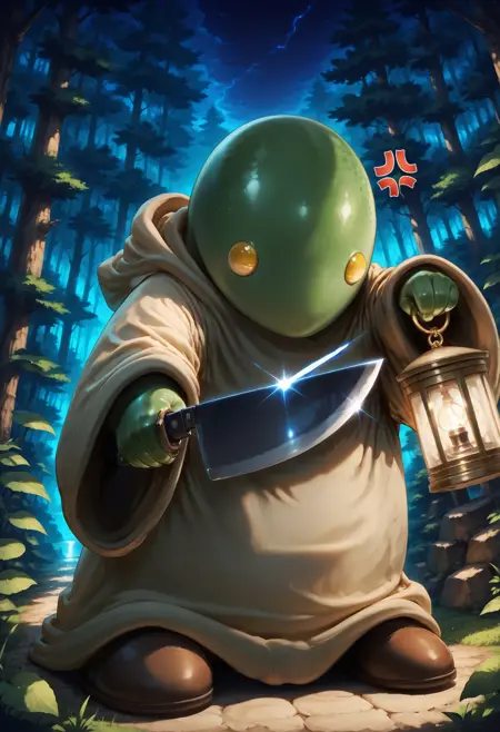 Trigger words :tonberry,holding knife,hood,robe,holding lantern