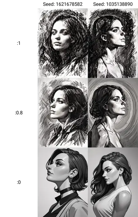 Here is an example of the differen LoRA weights. Let's start with full weight of 1:
