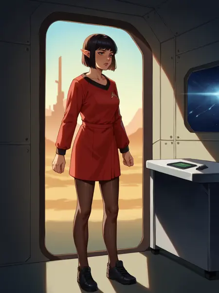 触发短语是 "stunf,star trek uniform"。如果想要女性版本,请添加