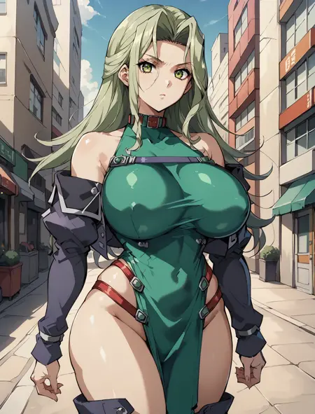 ill 光輝版キャラクタープロンプト: srww17, 緑色の髪, 緑色の目, 長髪, 前髪分け、