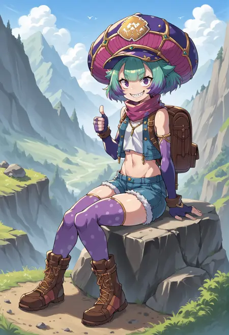 三阶段:短发、多色发、绿发、紫发、紫眼、尖牙、帽子、羽饰斗篷、可拆卸袖子、珠宝、过膝袜、羽毛、交叉式吊带