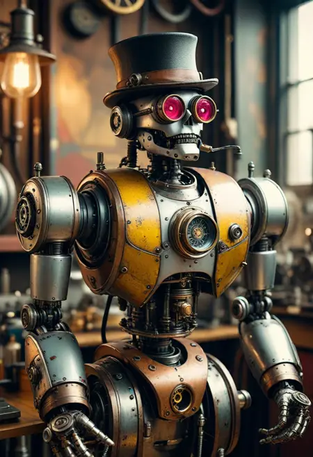 __crea-steampunk-robot/prompt-full__ : prompt the creature with features and location