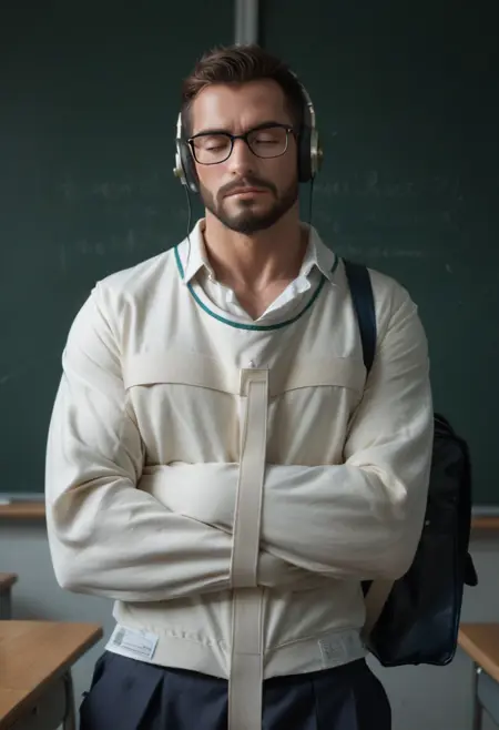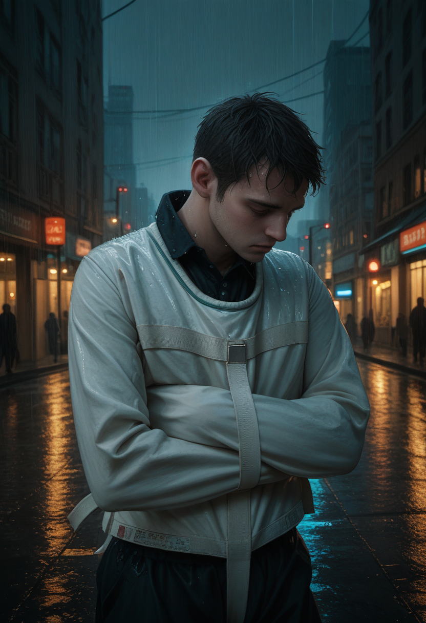 男性向けストレートジャケットLoRA。Psycho-II、8118、Classic Asylumブランドのストレートジャケットを基にしています。すべての例画像はtxt2imgで生成され、img2img、インペイント、ポストエディットは使用していません。SD 1.5版はこちらで利用可能です。