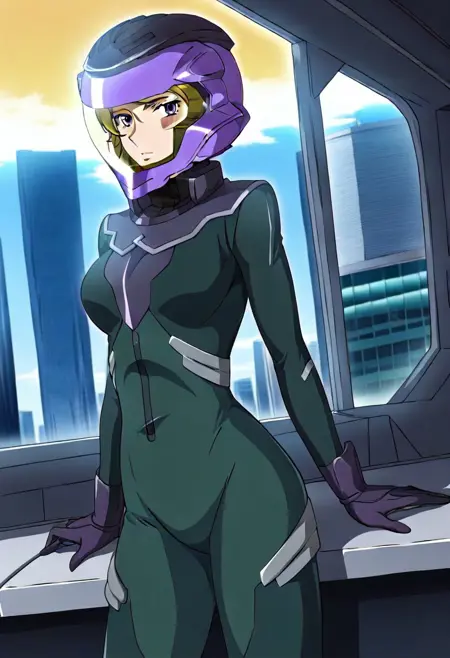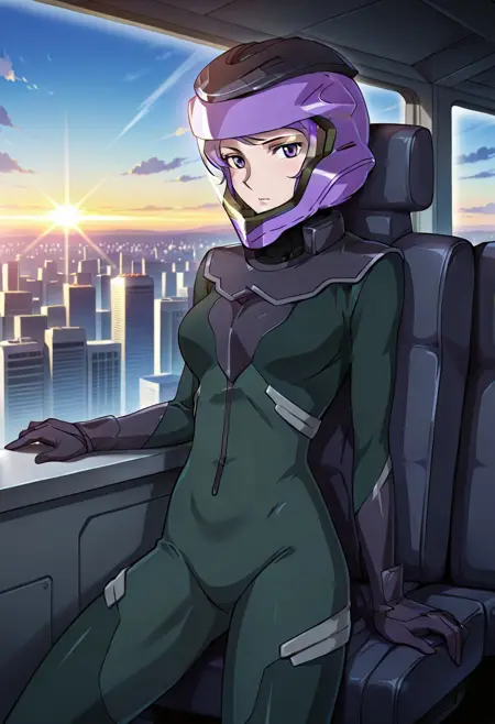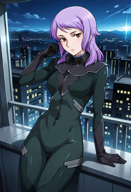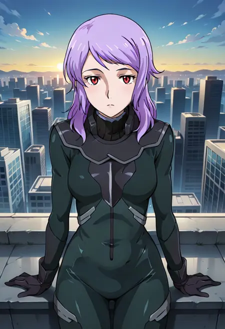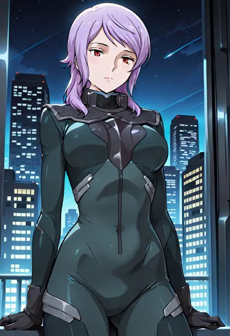 anew, 1명의 여성, 보라색 머리, 황색으로 빛나는 눈/빨간 눈