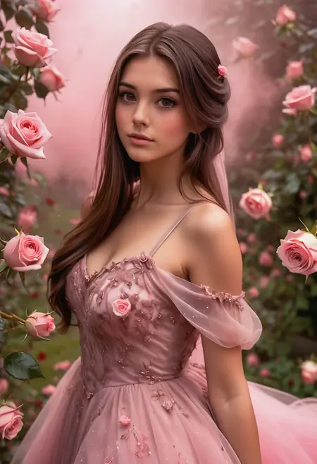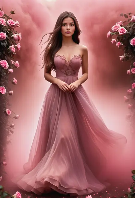 이미지에 분홍색을 더하거나 분홍 안개를 넣고 싶다면 pink mist 또는 _....는 분홍 안개에 둘러싸여 있다_라고 작성하세요.
