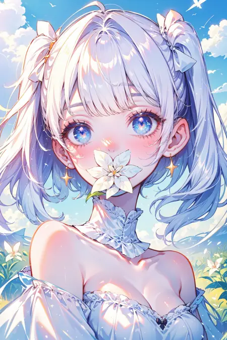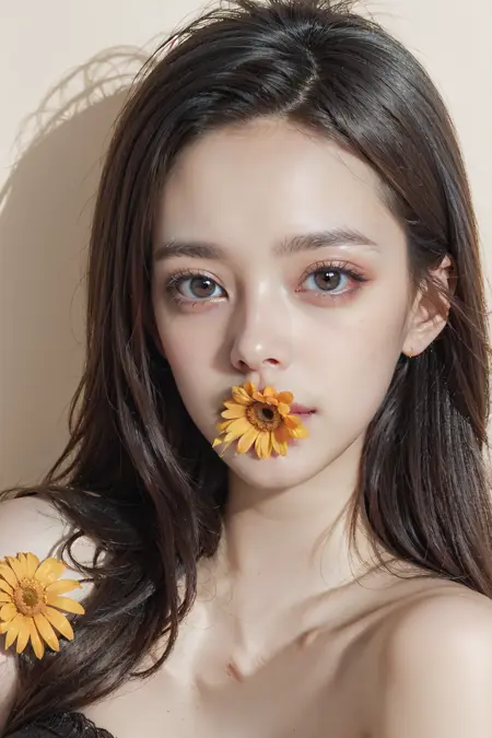 它会在嘴巴上生成一朵花,就像一个人用嘴叼着花(而不是拿着花茎)。它不适用于全身生成。