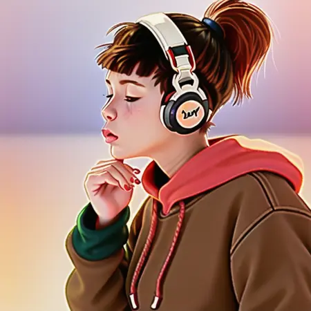 대체 프롬프트: lora:lofi-girl:1 lofi-girl, 1girl, solo, bangs, brown_hair, long_sleeves, holding, closed_eyes, upper_body, ponytail, indoors, hood, blunt_bangs, blurry, from_side, hoodie, profile, blurry_background, headphones, animal, cat, hood_down, short_ponytail, holding_animal, puckered_lips, holding_cat