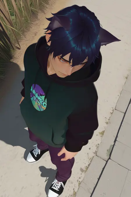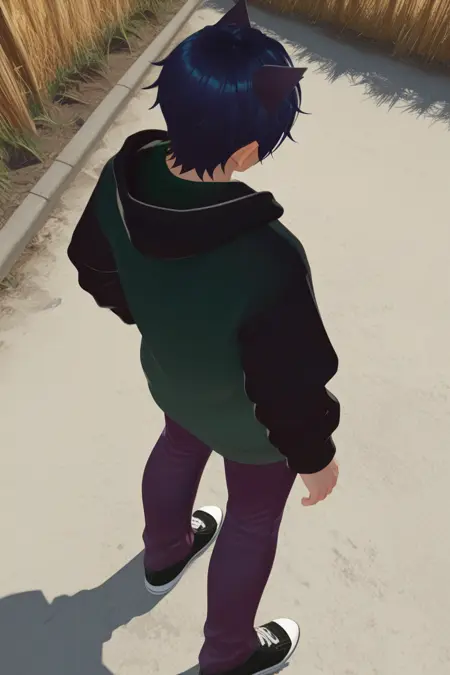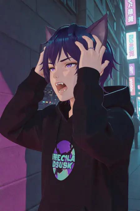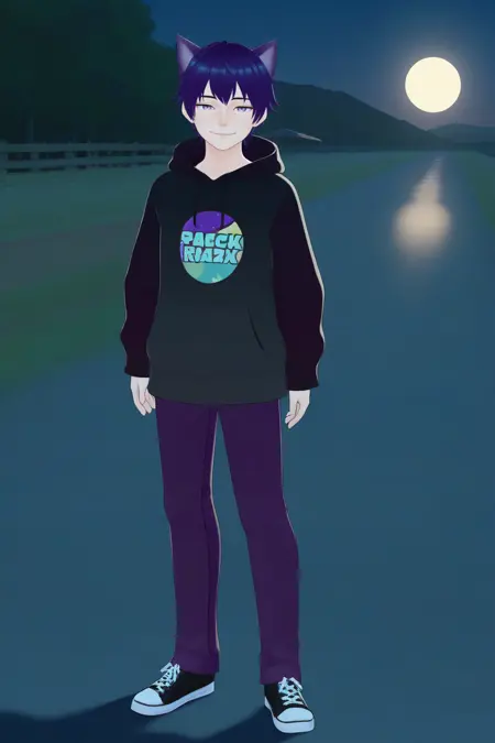 이건 사실상 우리가 만든 Vroid LOL이에요. "EARTH AND DUSK" 버전인데, 실제로 후드티와 바지를 만들고 얼굴 및 피부 세부 사항을 추가로 구입했어요.