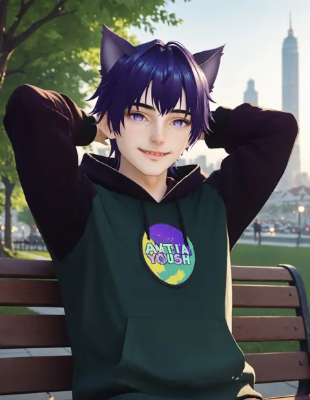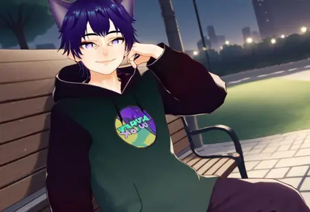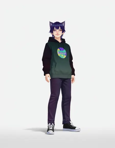 This is literally just our Vroid LOL, it's the "EARTH AND DUSK" one as we actually made the hoodie and pants and purchased some extra face and skin details.