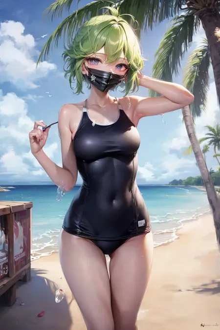 Blue eyes, mask, green hair