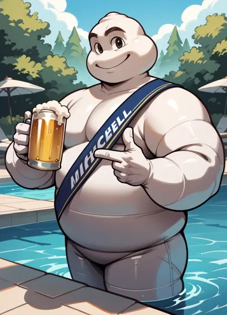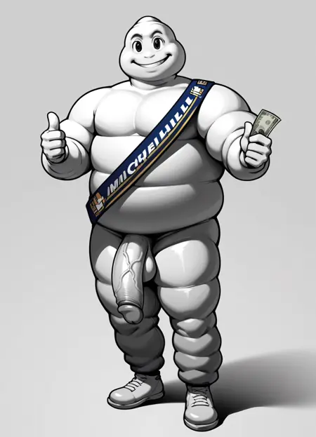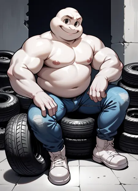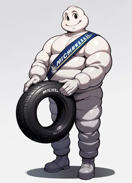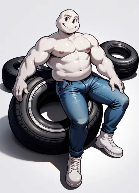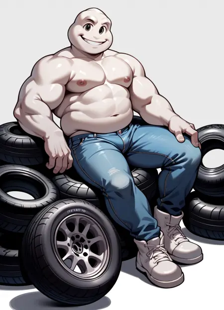 Keywords: hud_michelin, solo, smile, 1boy, male focus, looking at viewer, boots