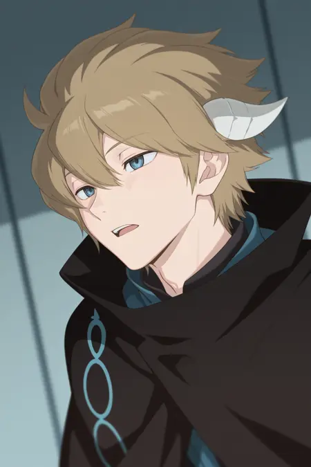 黑色斗篷、学兰服、灰色夹克、灰色长裤、黑色鞋履