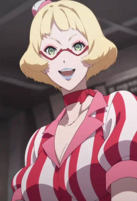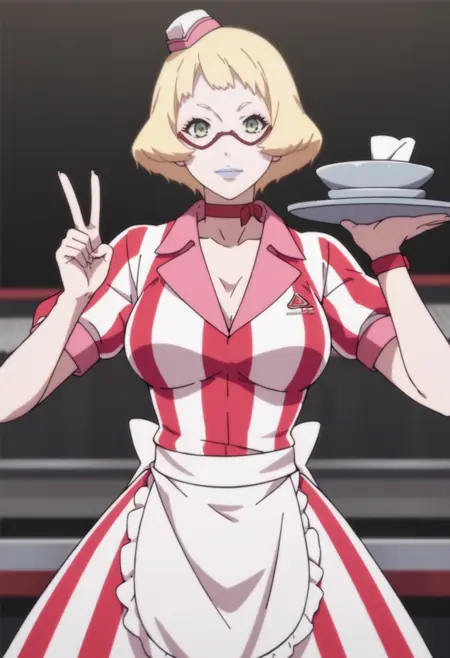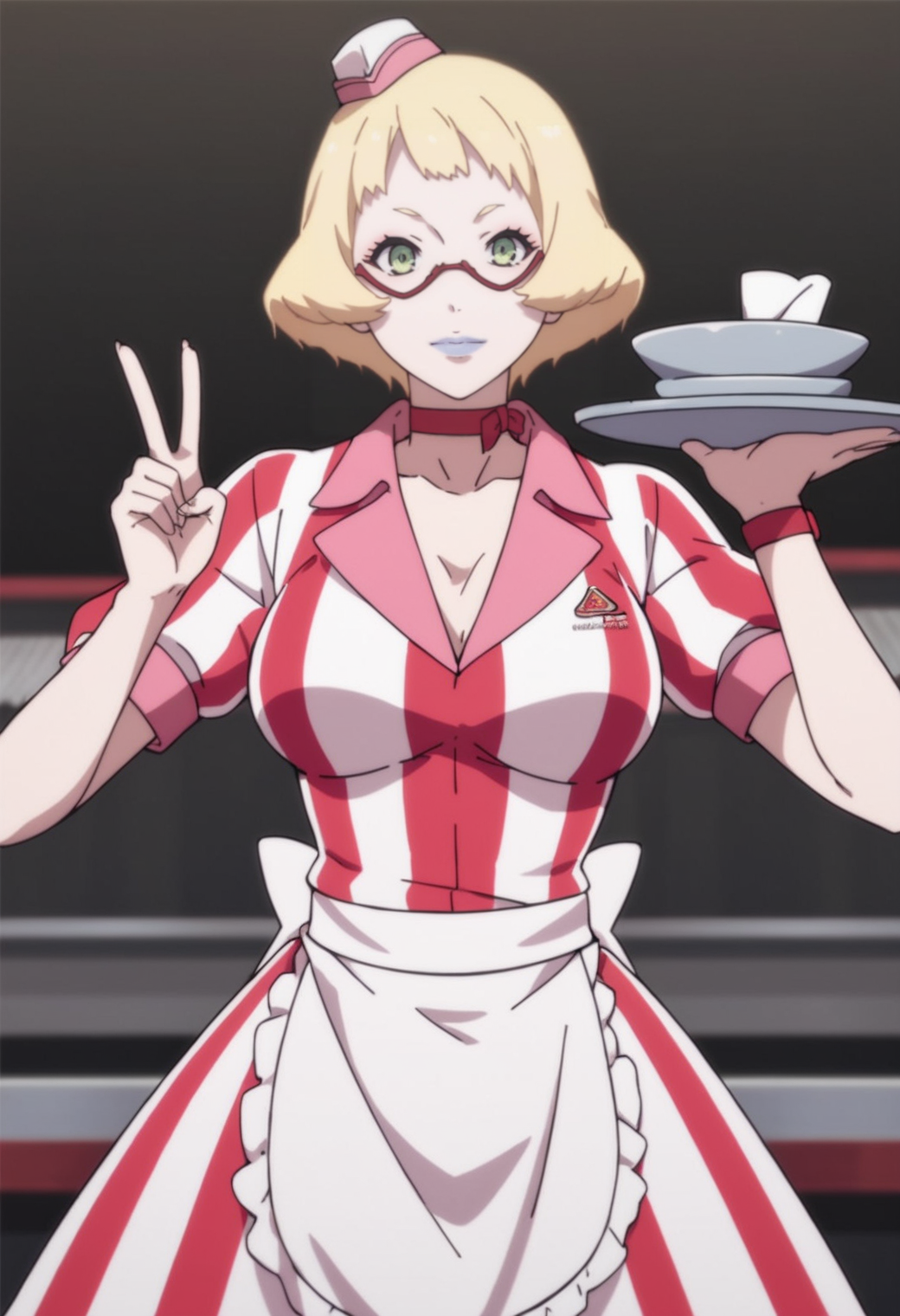 chiaki, strapped dress, waitress, glasses, choker, hat, apron