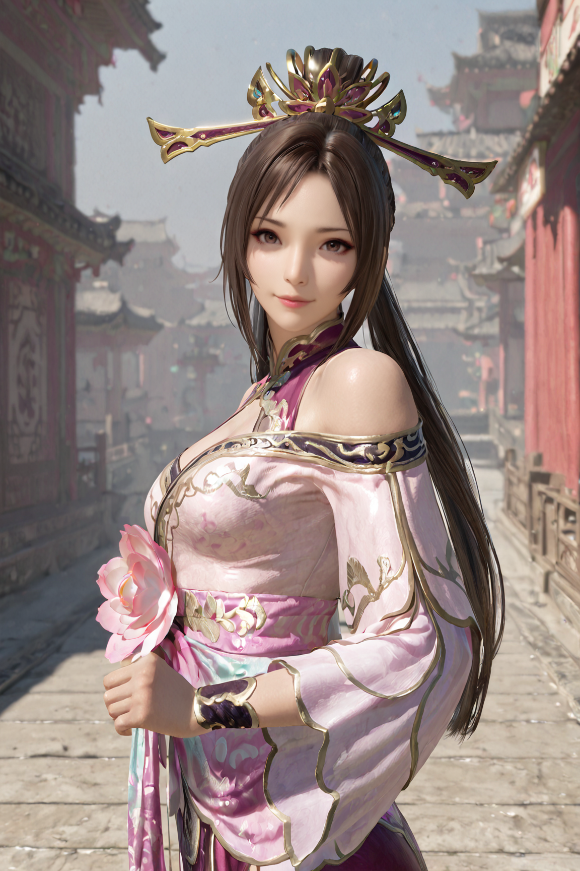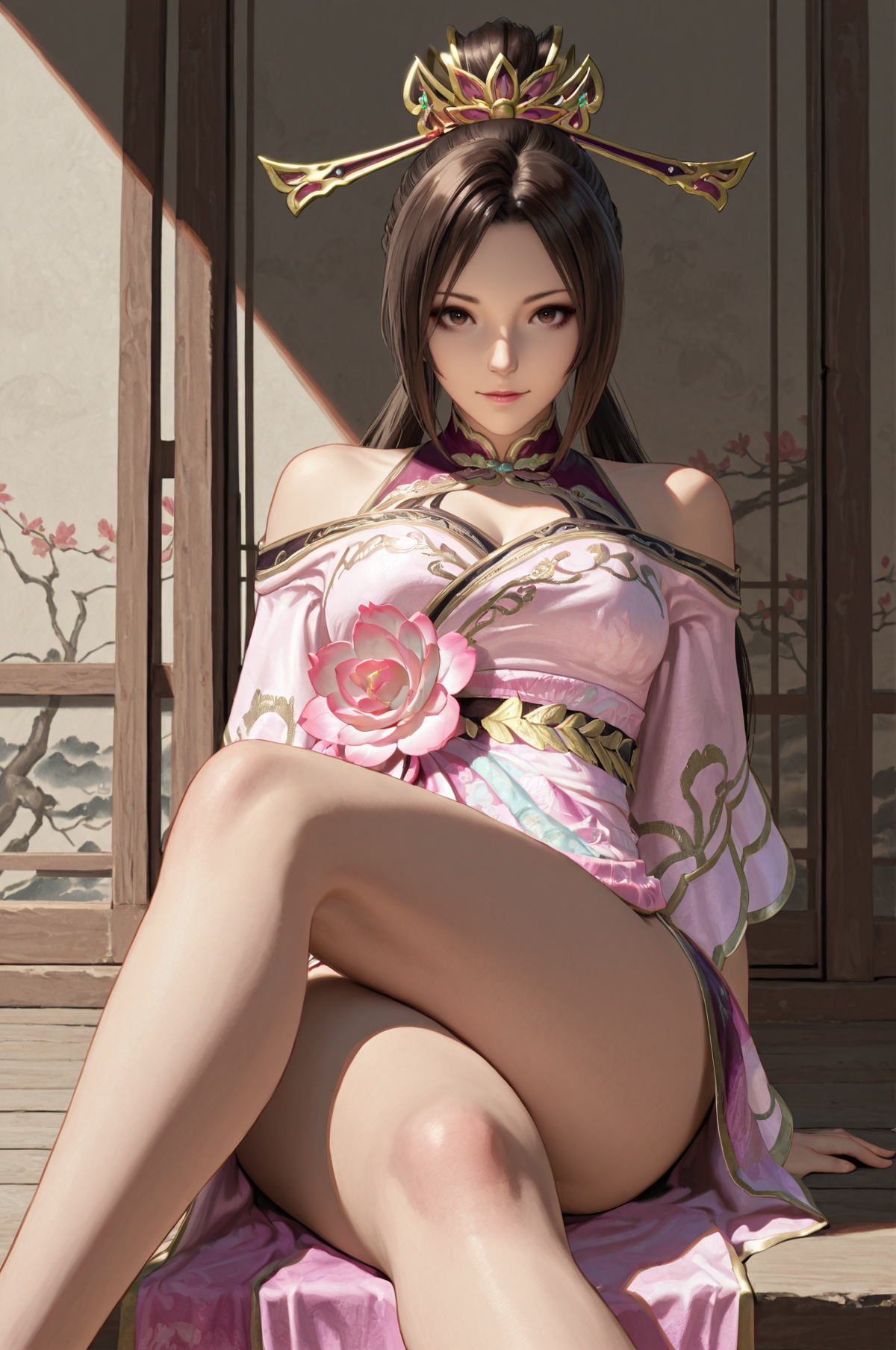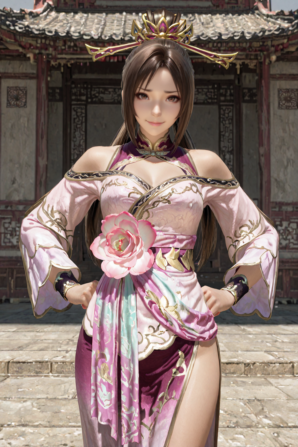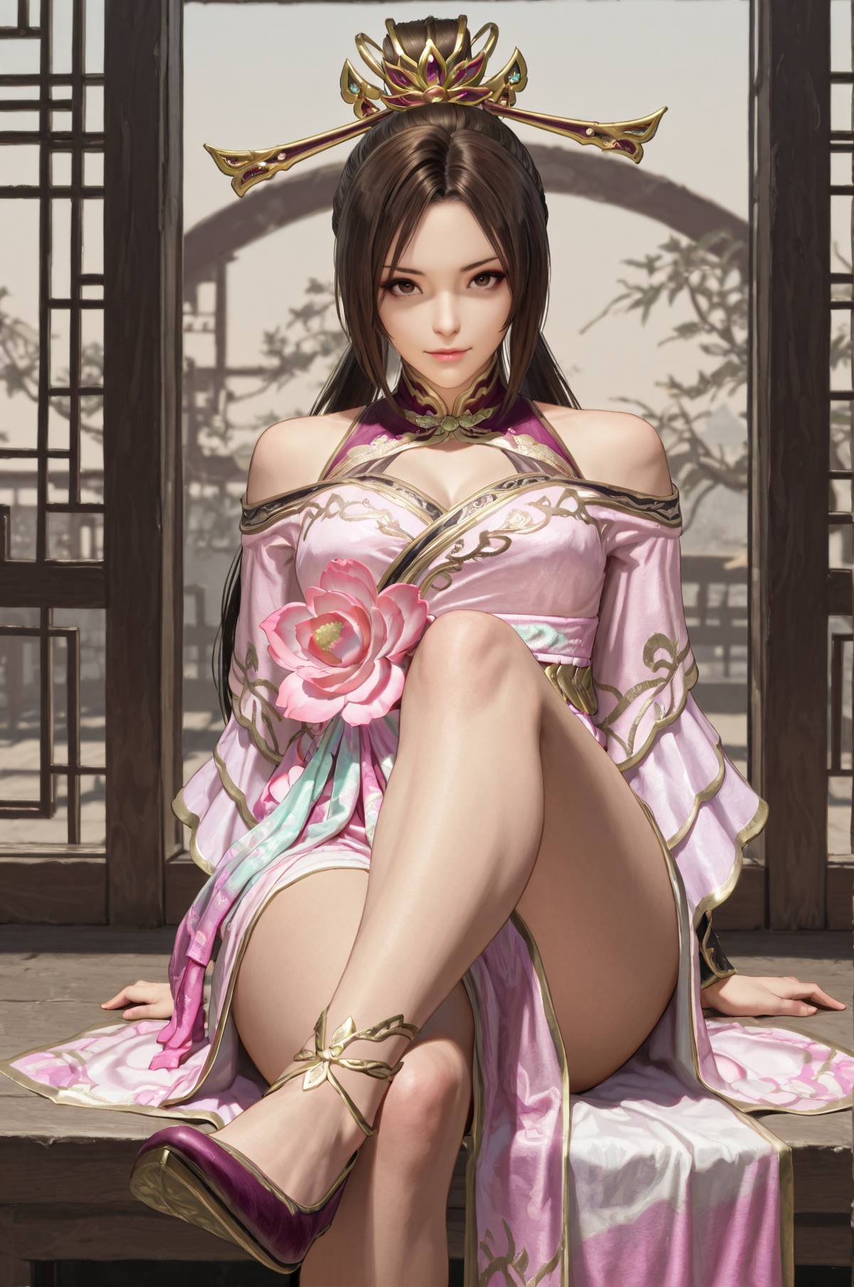 추천 긍정 프롬프트: 긴 머리, 머리 장식, 드레스, 중국풍 복장, 갈색 머리, 꽃, 보석