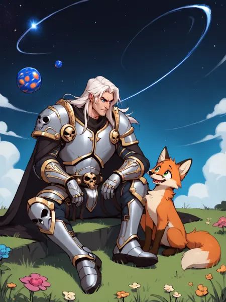 This LoRA is meant to generate Arthas Menethil as Death Knight without a helmet. Trigger words are: arthas warrior. Actually it seems to capture the concept of white haired badass dude with skulls on armor, I think it mixed Geralt, Dante and space marine.
