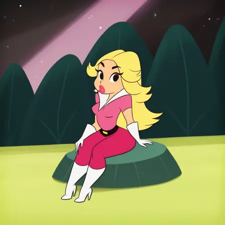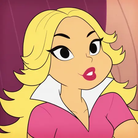 Bebe_Rexha, 1girl, solo, blonde hair, long hair, black eyes, lipstick,