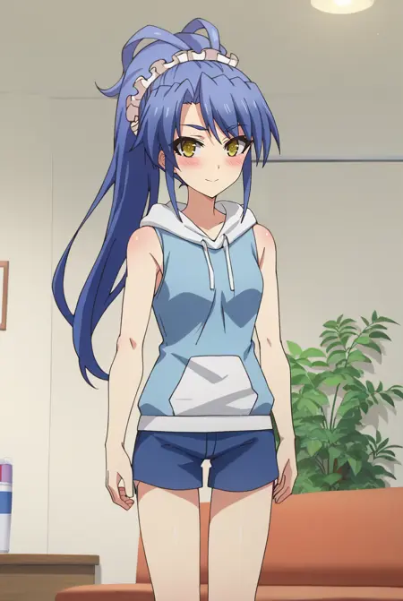 Ver #1: 青髪、黄緑色の目、高いポニーテール、白いスクランチ