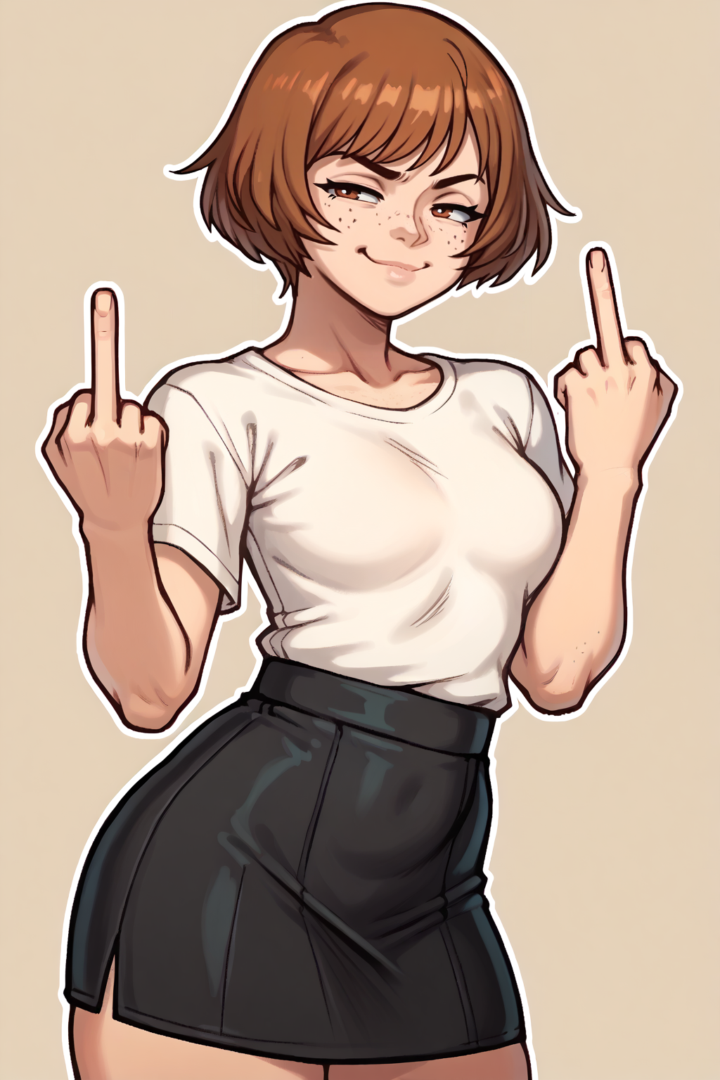 Main Prompts: NSDorothyFE6, freckles, brown hair, short hair, brown eyes