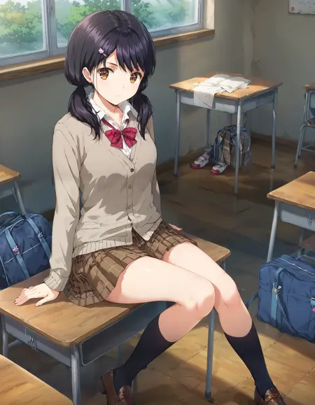 服装:白色衬衫,棕色毛衣,百褶裙,灰色裙子,袜子,鞋子,