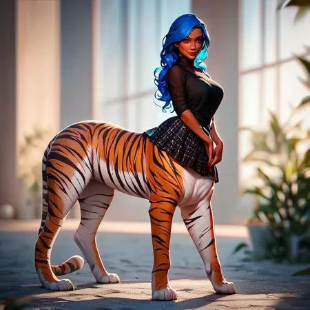 Example prompt: Centaur, centaur tiger, 1girl, green eyes, red scales