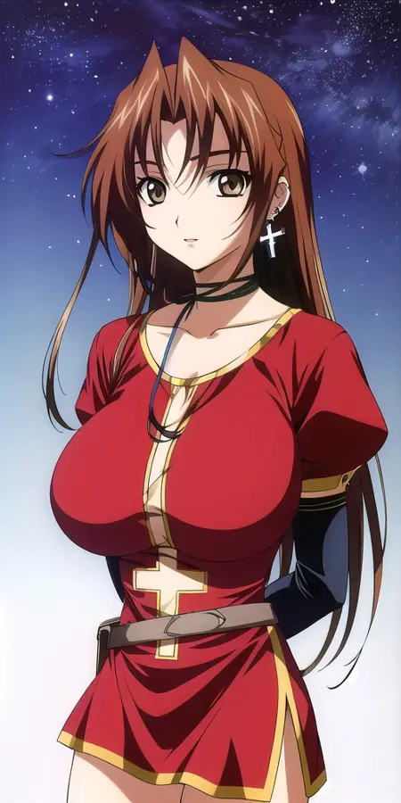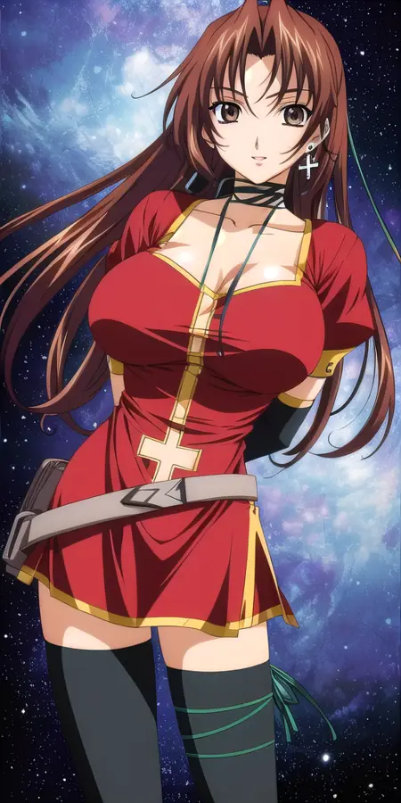 다음과 같이 좋은 결과를 얻었음: masterpiece, best_quality, highres, lora:KGEclair:0.7, KGEclair, yellow_eyes, large_breasts, EclairRedOutfit, cross_earrings, single_thighhigh, thighhighs, gloves, single_earring