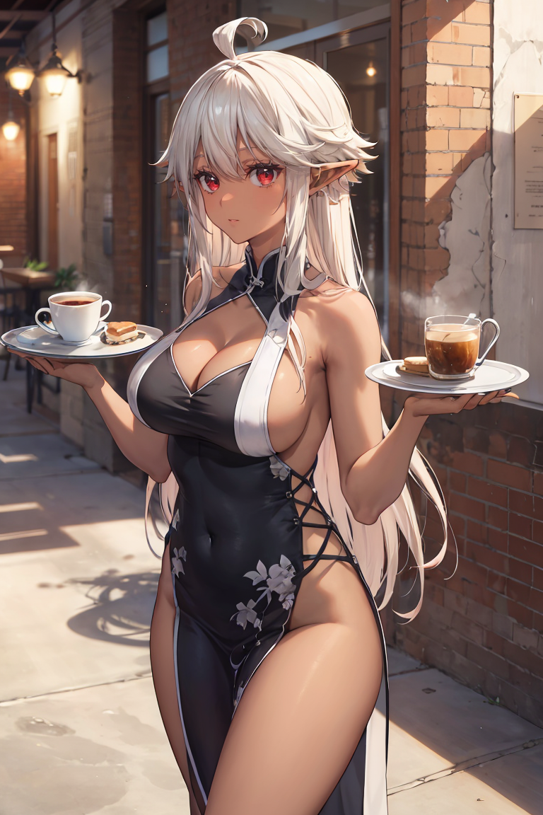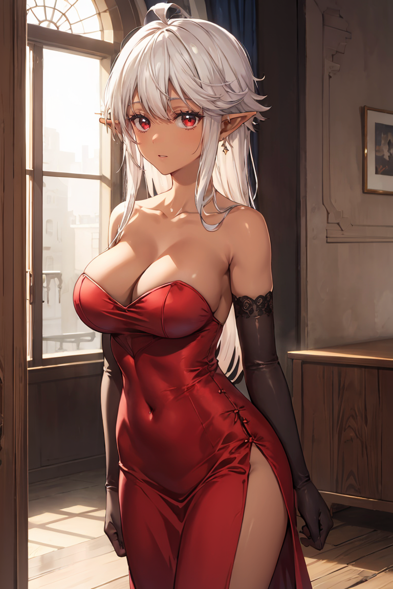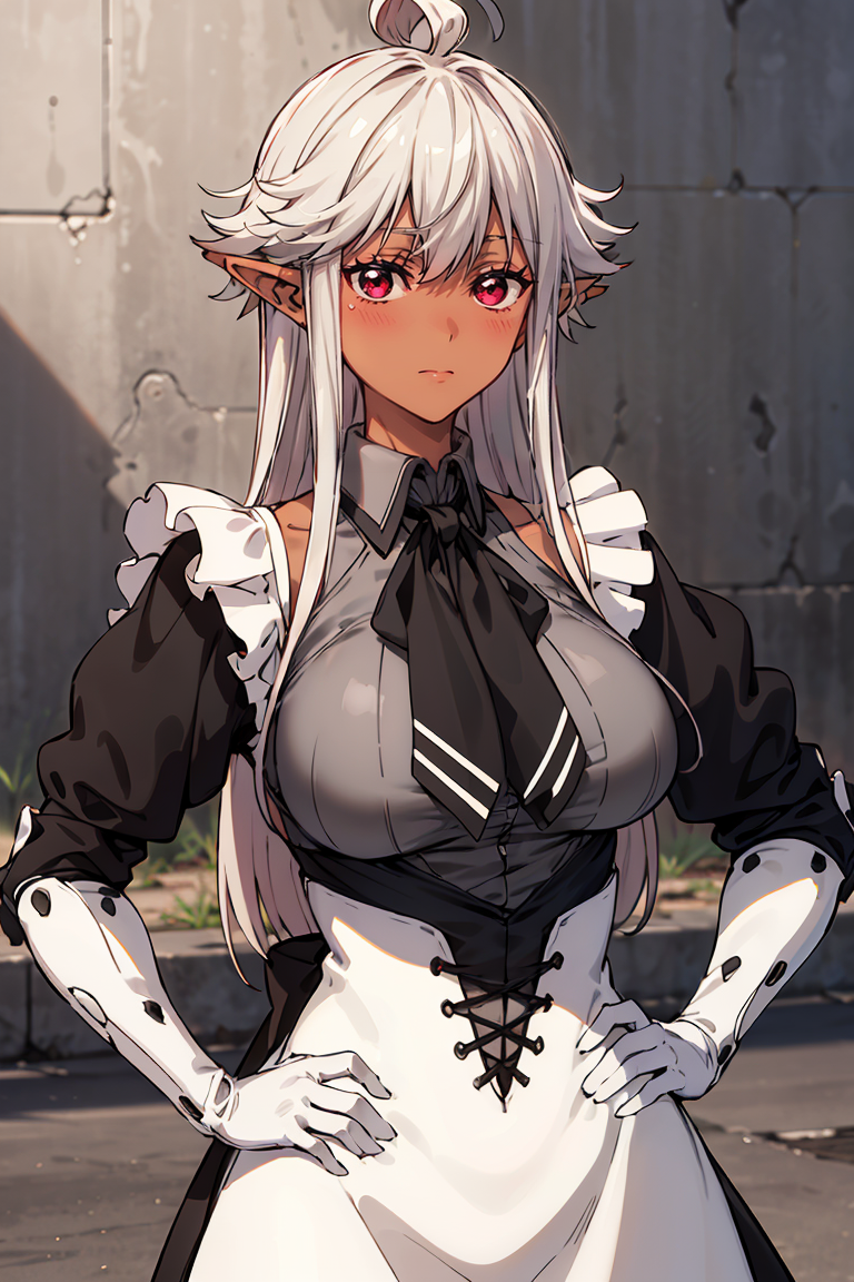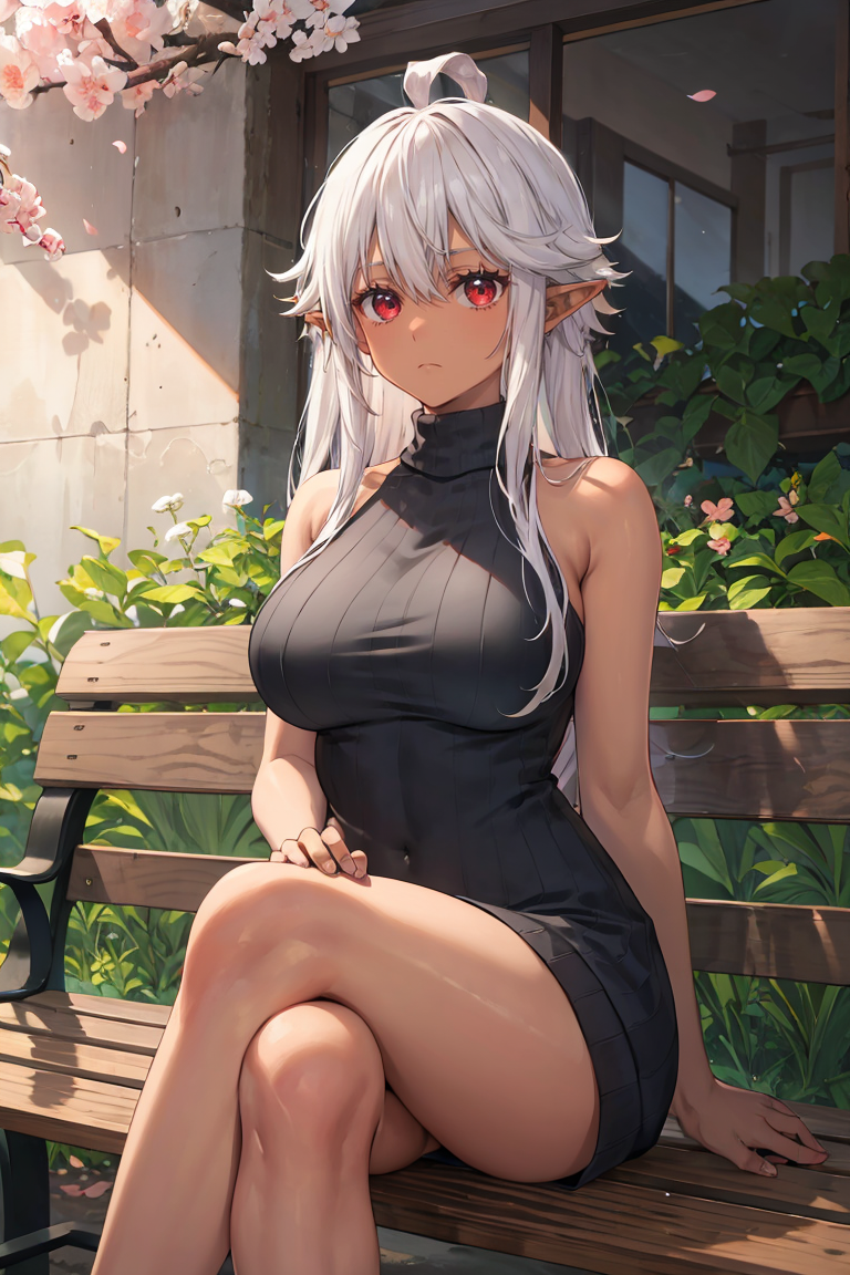 我读了漫画,等待动画播出。当然,我立刻计划制作这个美丽的精灵。该模型存在一些问题:由于她在动画中姿势固定,调整她日常服装的手臂位置稍显困难。有时最好增强深色皮肤并添加眼珠颜色,但这并非必需。