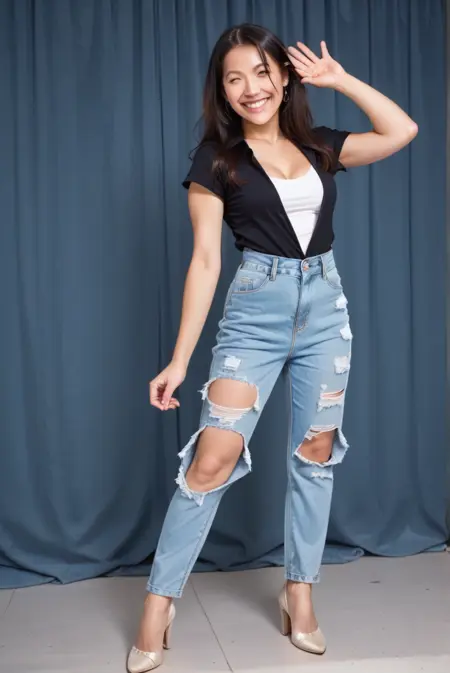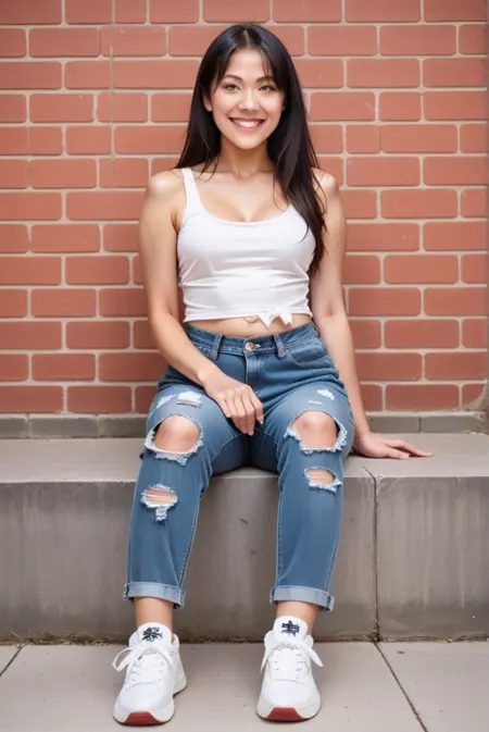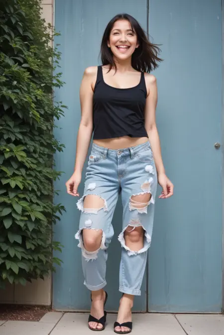 포니엑스엘에서 찢어진 청바지와 언더 피시넷