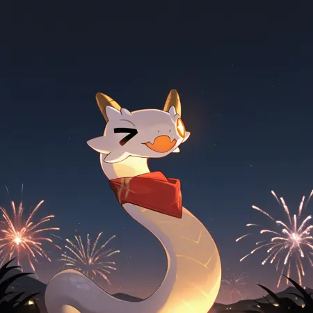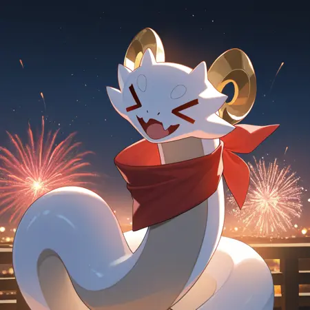 RicCakHi3, no humans, animal, red scarf, horns, snake, white snake, +_+,