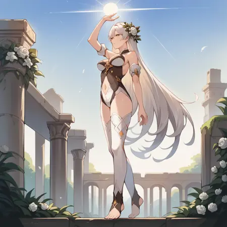 KianaHi3, Fol003, Kia_Bst, 흰 머리, 파란 눈, 키아나 카슬라나, 갑옷 레오타드, 이색 레오타드, 흰 레오타드, 검은 레오타드, 배꼽 자르기, 배꼽, 대안 허벅지 부츠, 검은 신발, 대안 가슴 커버, 쉬르그(옷), 검은 쉬르그, 기계적 귀, 가짜 동물 귀, 머리핀, 손가락 없는 장갑, 대안 검은 장갑, 기계적 꼬리, 대안 분리된 소매, 대안 흰 소매, 대안 긴 소매,