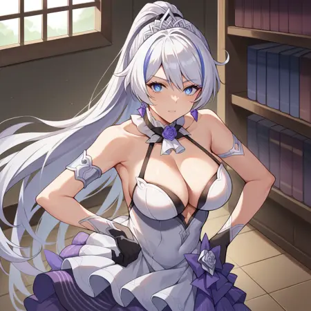 KianaHi3, Fol006, Kia_Hfi, 긴 머리, 하얀 머리, 파란 눈, 보라색 동공, 키아나 카슬라나, 기호 모양 동공, 소매 없는 드레스, 다른 흰 드레스, 보라색 동공, 검은 꽃, 가슴에 꽃, 젖가슴, 대체 분리된 칼라, 흰 허벅지 스트랩, 그라데이션 머리, 하얀 머리, 보라 머리, 말뚝머리, 아호게, 기호 모양 동공, 파란 눈, 미니 티아라, 긴 치마, 대체 흰 치마, 보라 안 치마, 열린 치마, 다른 분리된 소매, 대체 짧은 소매, 대체 프릴 소매, 노출된 어깨, 대체 흰 신발, 힐 부츠