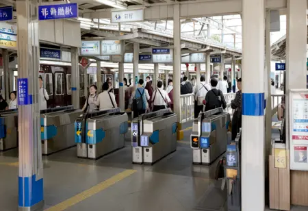 kaisatsu, koyoenst, train station, scenery, shop, sign, automatic ticket gate, scenery