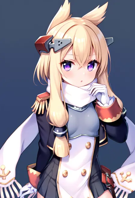 warspite \(azur lane\), blonde hair, long hair, purple eyes, sidelocks, headgear,