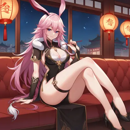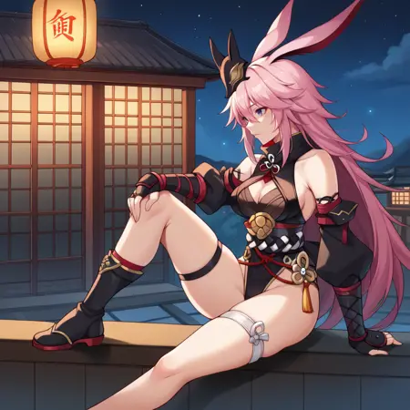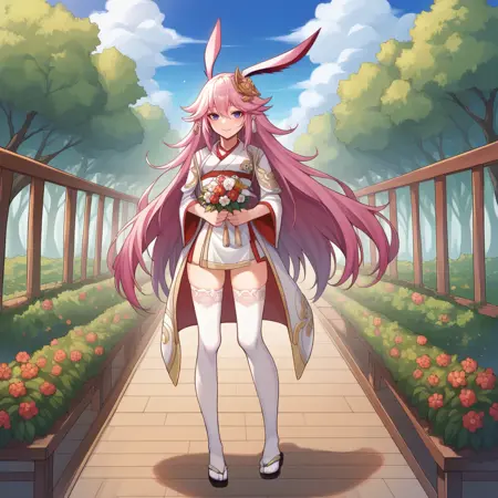 Yae_Sakura, long hair, pink hair, yae sakura, hair between eyes, fox ears,