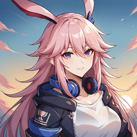 Yae_Sakura, long hair, pink hair, hair between eyes, fox ears, yae sakura,