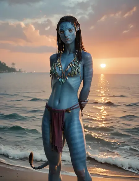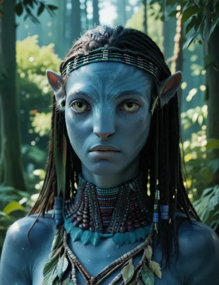 Trained on images from the character Neytiri in the movie "Avatar-The Way of Water" portrayed by Zoe Saldaña