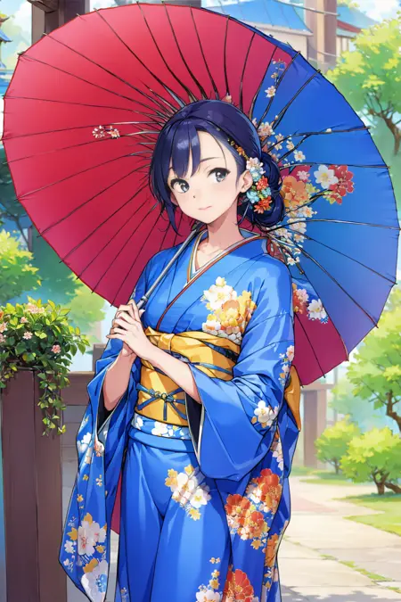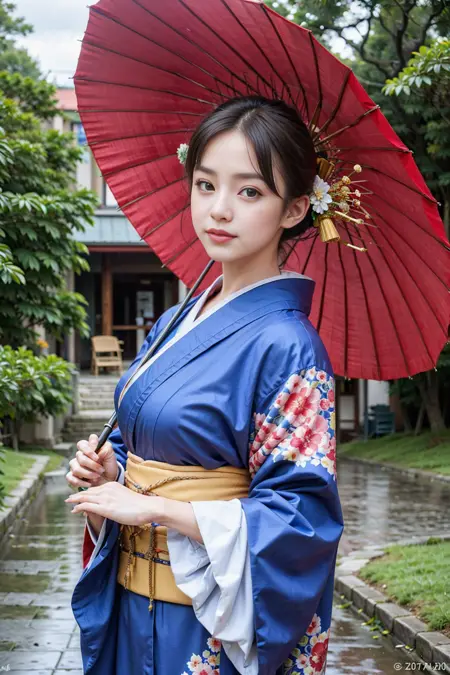 v2.0: 와가사/잔오메가사를 생성하려면 다음 프롬프트를 추가하세요: kimono 착용, 우산을 손에 쥐고 있는 모습