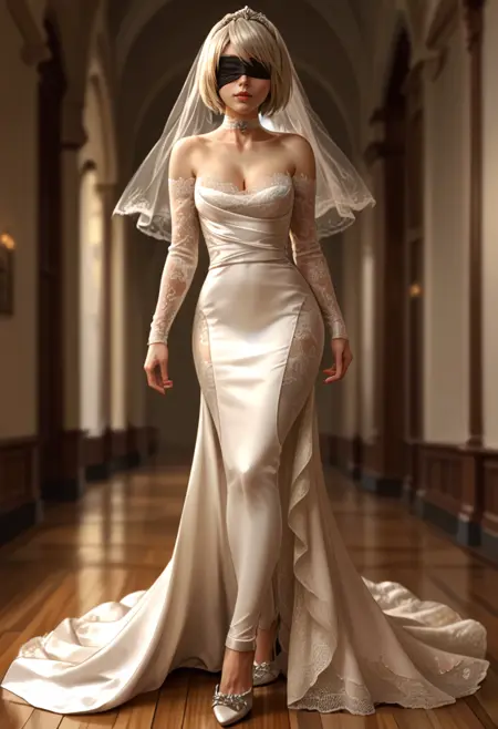 bridal gown, veil