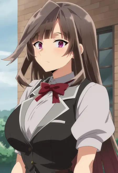 outfit 2 : red bow, red bowtie, , white shirt,puffy short sleeves, black vest,