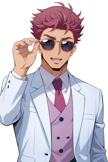 danji momoyama,necktie,white shirt,collared shirt,purple waistcoat,open clothes,purple necktie,formal,white suit