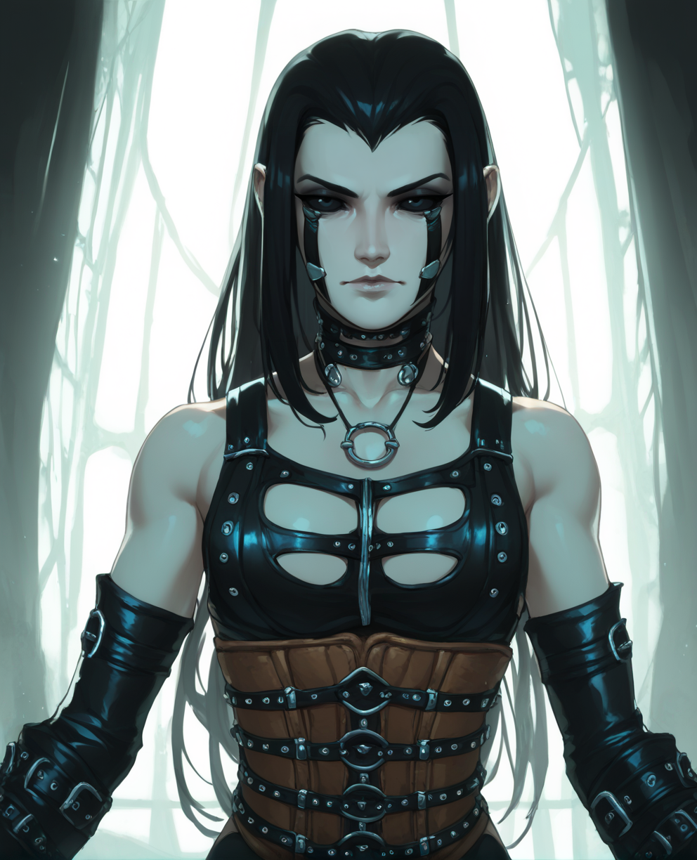 Ephemera, black hair, black eyes, long hair, - black lips, -