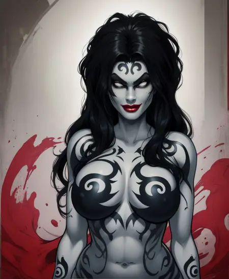 Ferril,黑发,白眼,长发,面部纹路,红唇或口红,