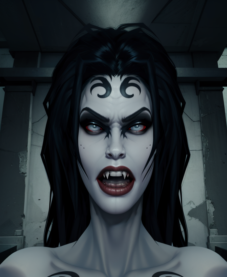 Ferril, 검은 머리카락, 흰 눈, 긴 머리카락, 얼굴 무늬, 빨간 입술 또는 립스틱,