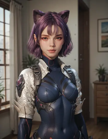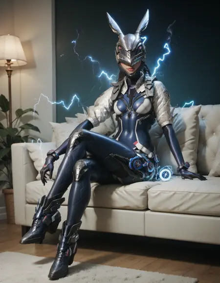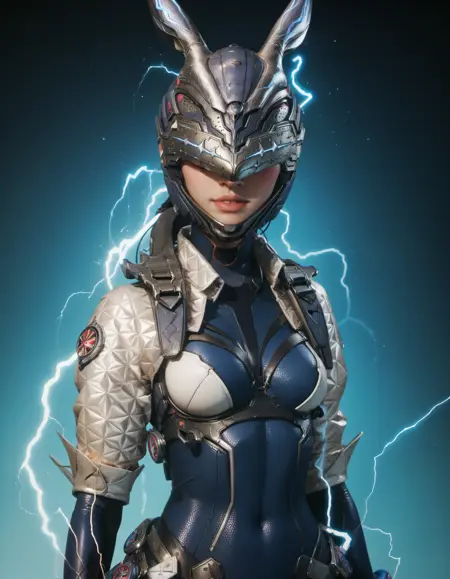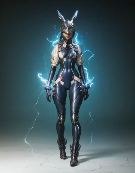 Ult Bunny 수트는 다음 프롬프트를 사용하여 표시할 수 있습니다: (흰색 레오타드, 갑옷, 갑옷 부츠,) Ult Bunny에는 헬멧이 없으며, 기본 헬멧이 이를 덮어씁니다.