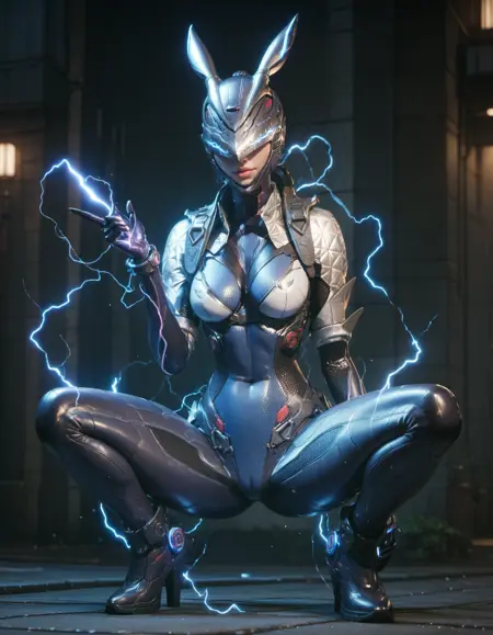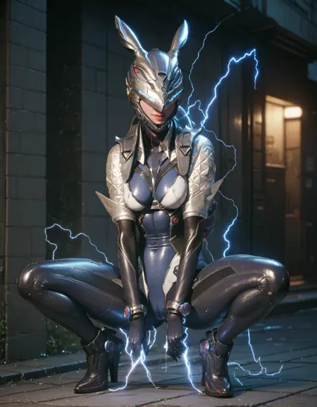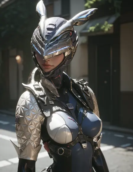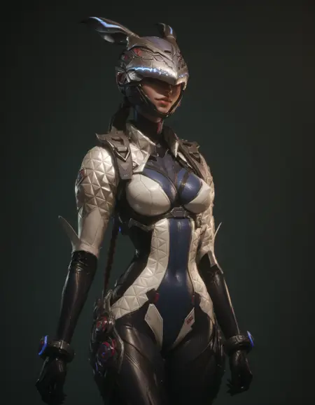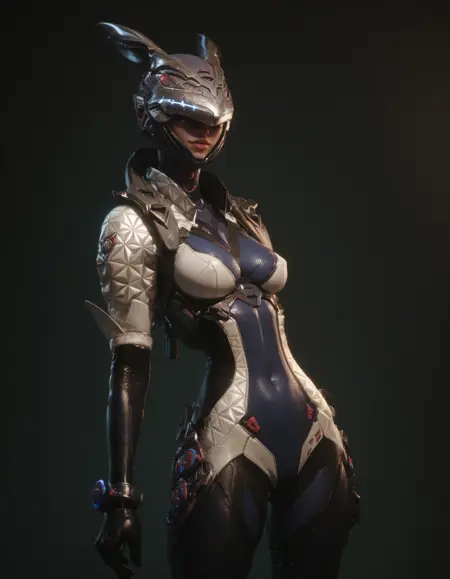 The Ult Bunny suit can be shown by using prompt: (white leotard, armor, armored boots,) there is no helmet in Ult Bunny because the default helmet overrides it.